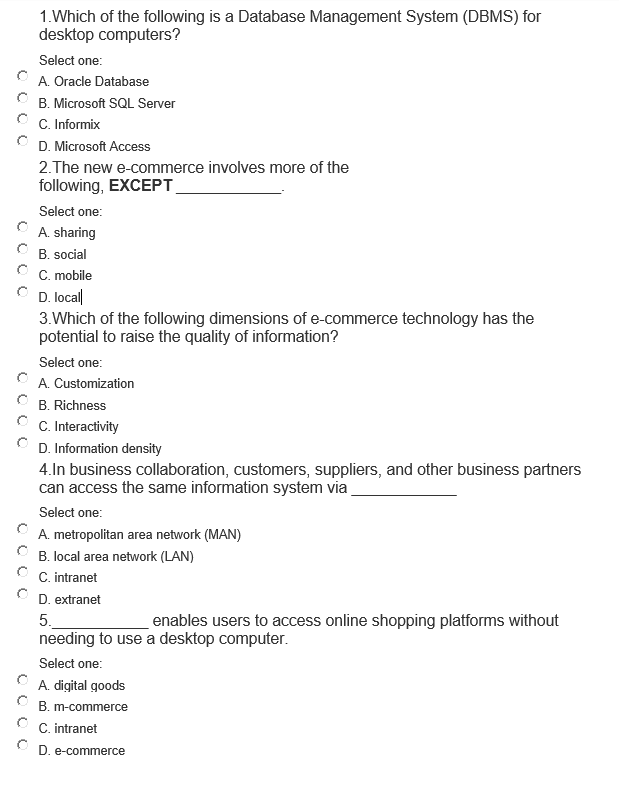 Solved 1 Which Of The Following Is A Database Management Chegg Com